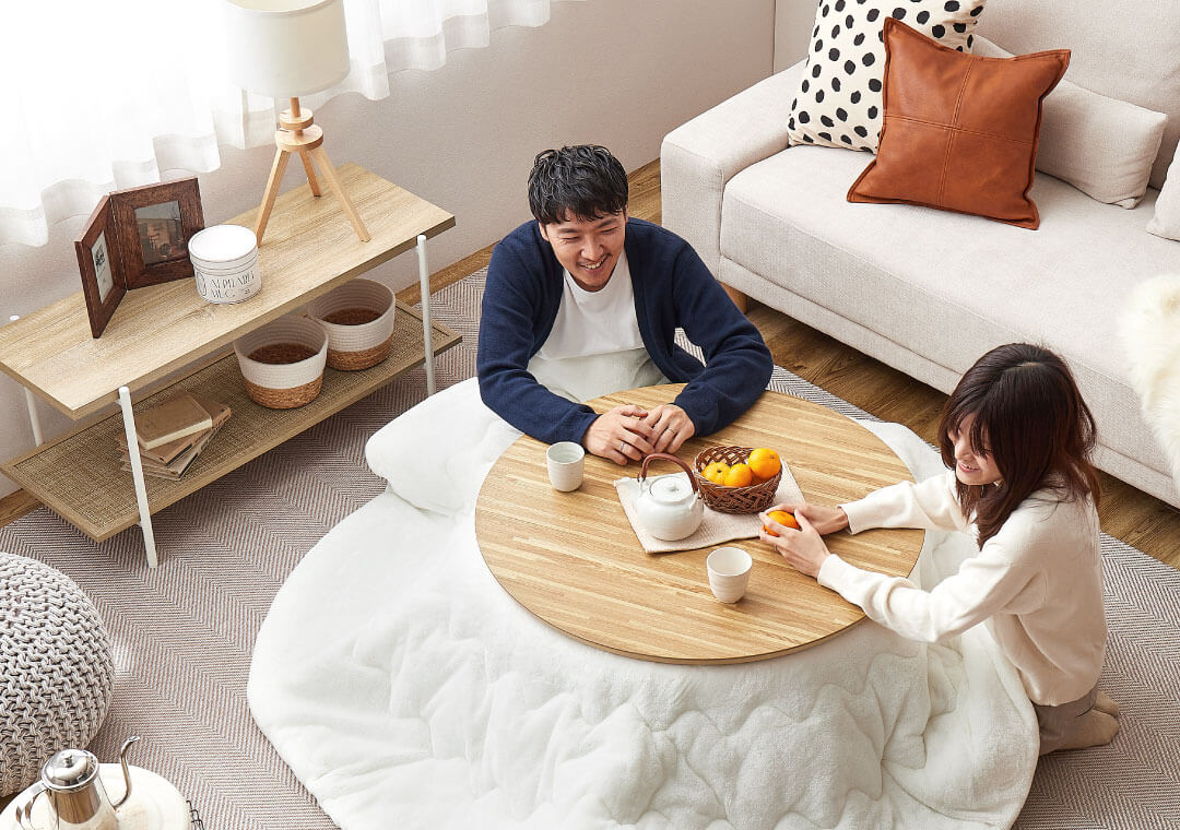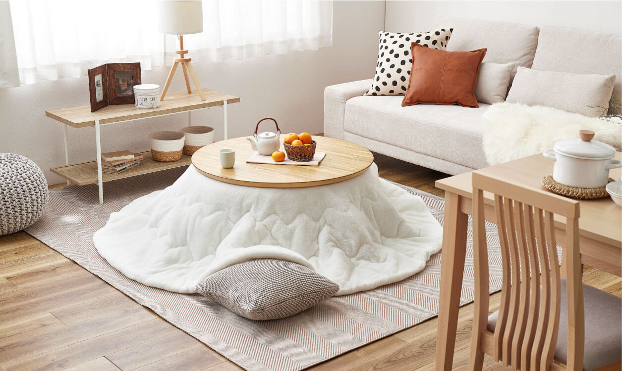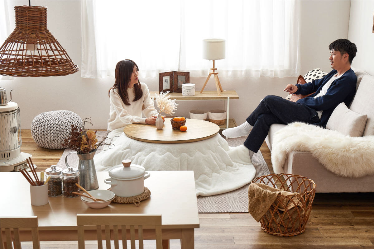 ・オシャレな丸型こたつで家族団らんが弾む空間に