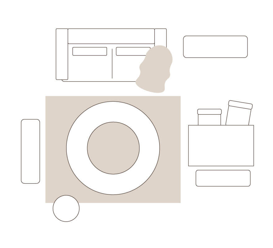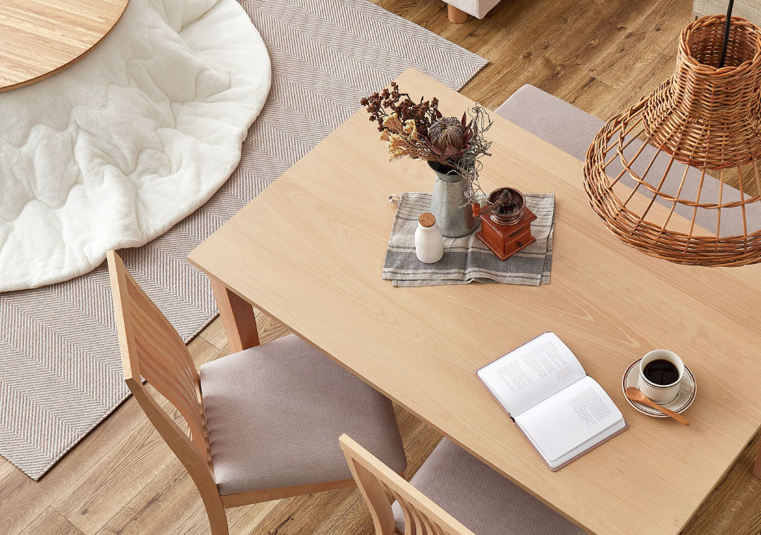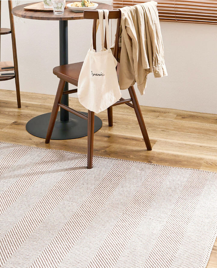 ラグはちょっと大人っぽいヘリンボーン柄に。