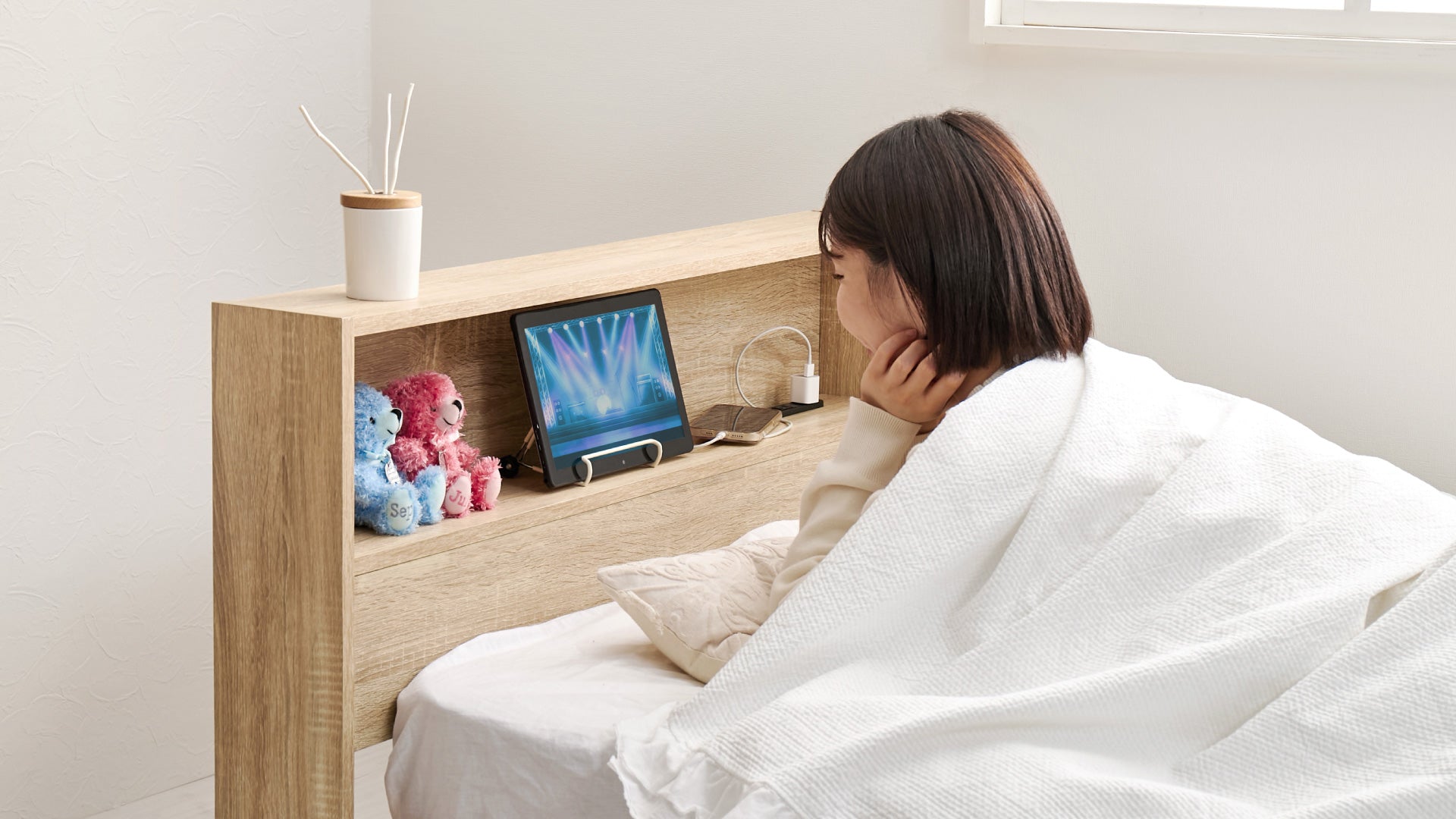 枕元でスマホやタブレットが使えるので、