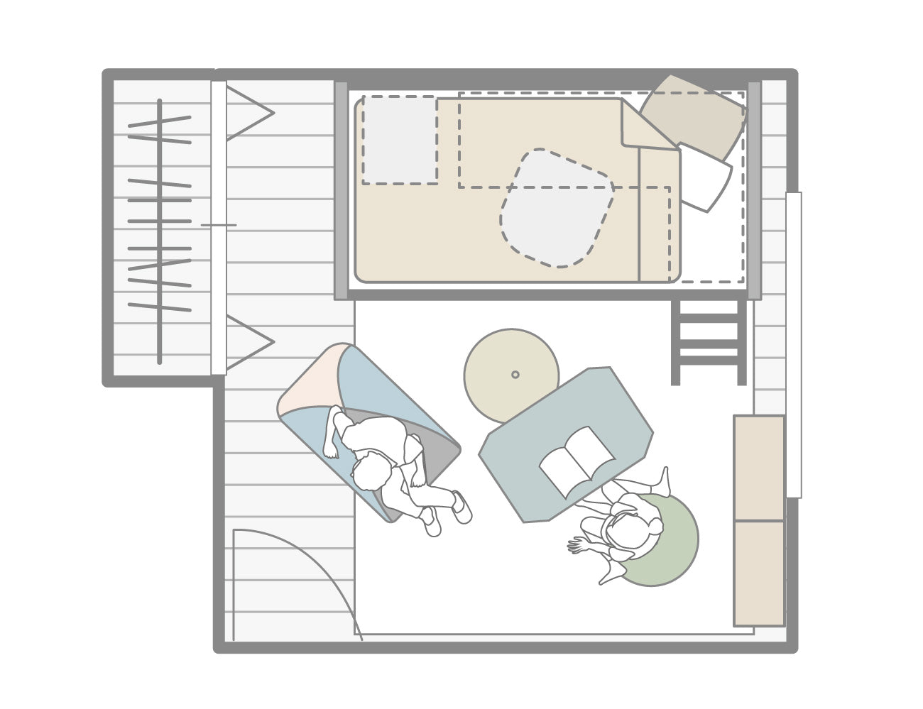 ・学習と遊びでスペースを分けてメリハリのある空間に