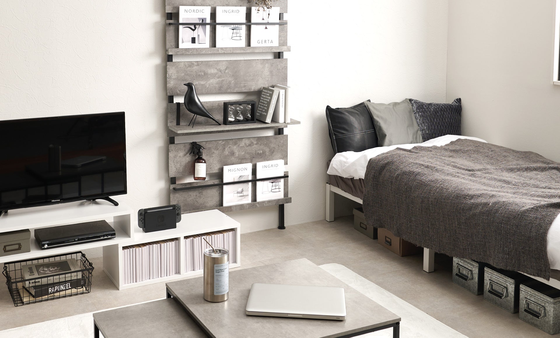 大学生のモノトーンワンルーム