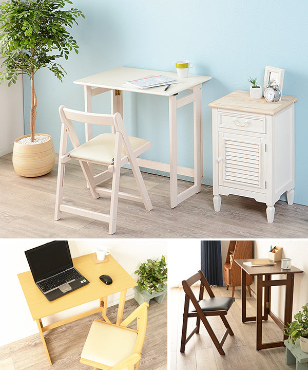 使用しない時は折りたたんで収納できる、便利なデスクとチェアセット。