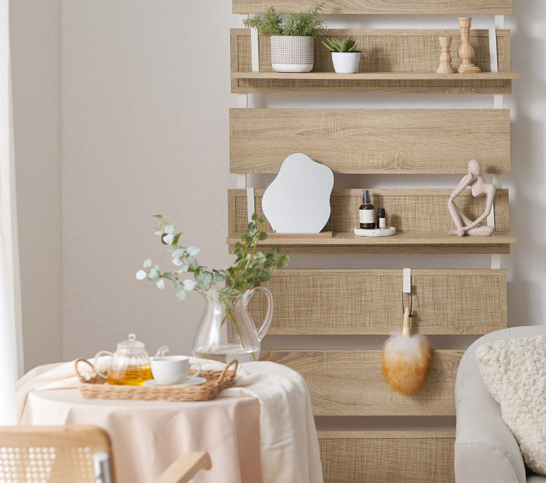 ラタン調の突っ張りラックなら