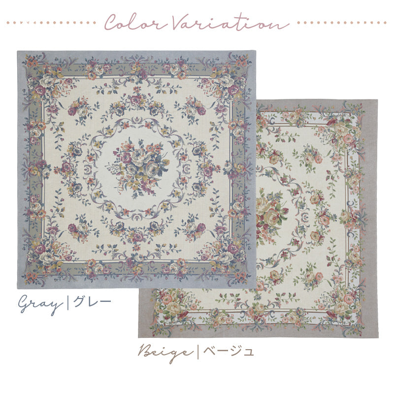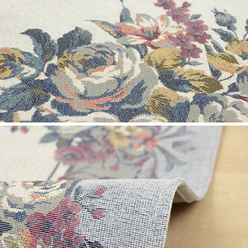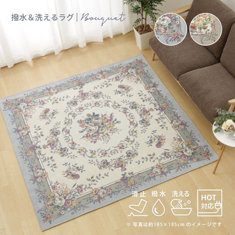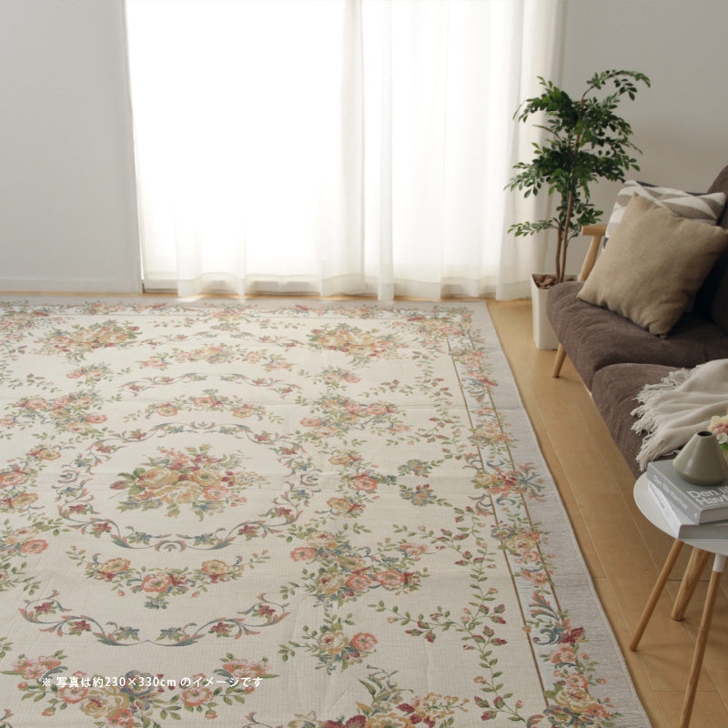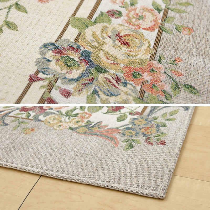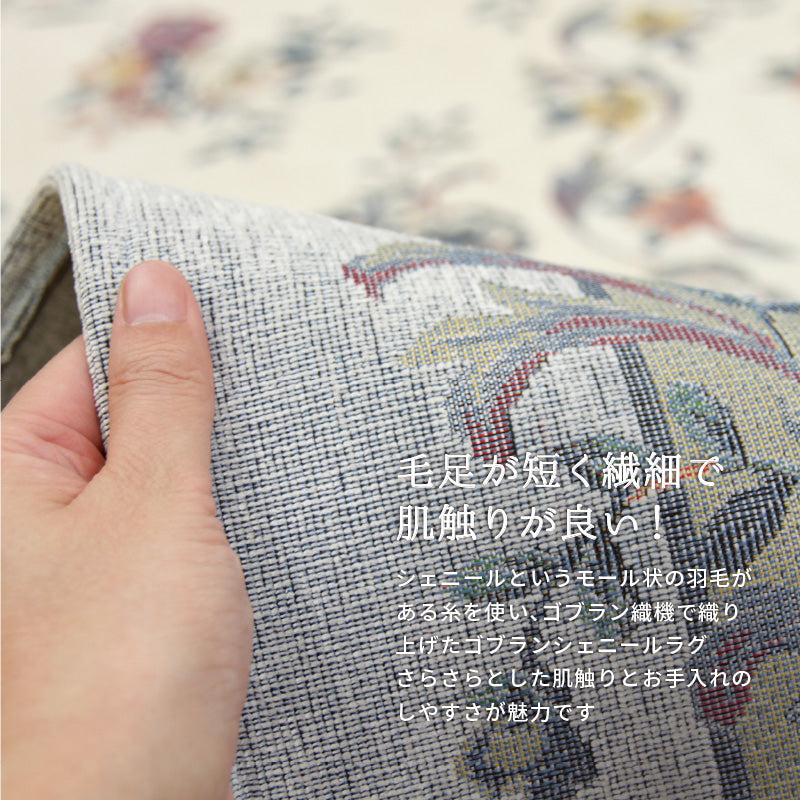 [4サイズ] 洗える はっ水 ゴブランシェニールラグ 薔薇柄 ブーケ
