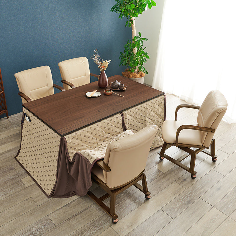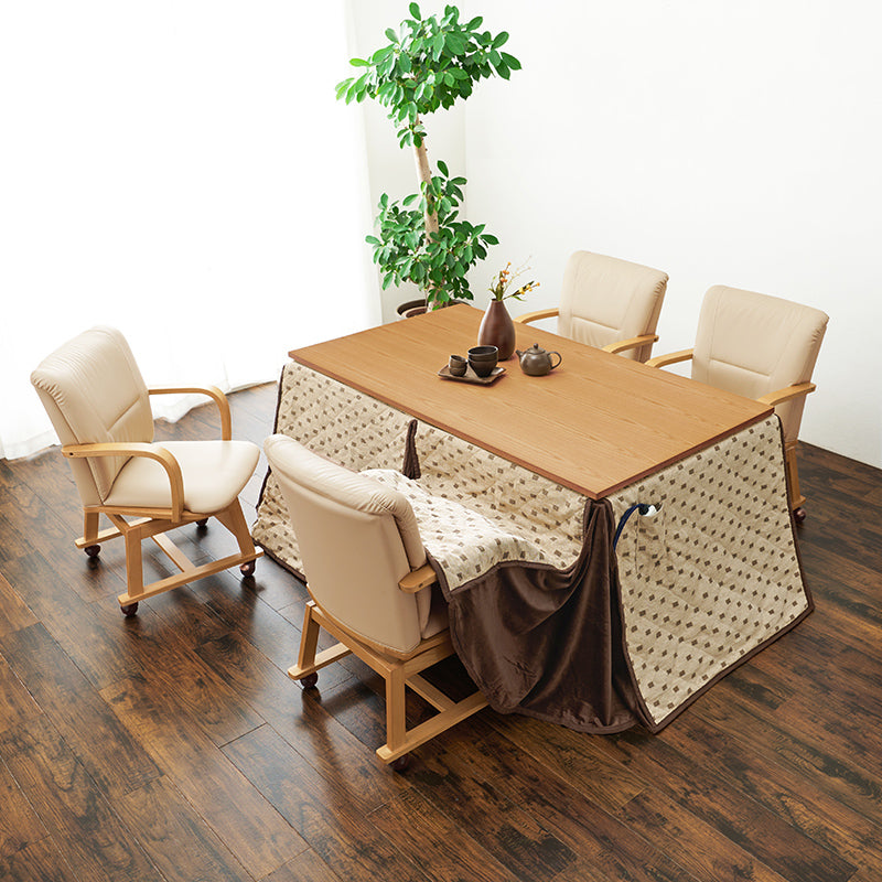 [150×85×64][セット] 4人用ダイニングこたつ 高さ2段階調節可能 長方形 趣(ハイタイプ)+トルタ