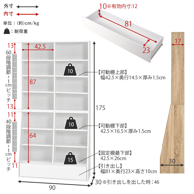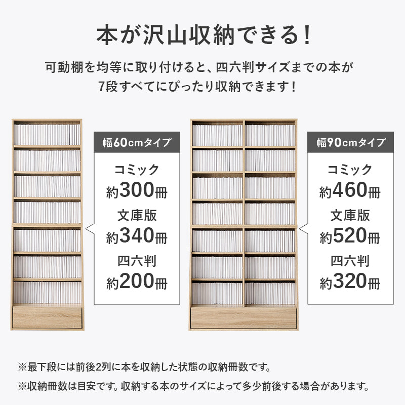 [幅60/90] 1cm刻みで調節できる本棚 ハイタイプ MORU