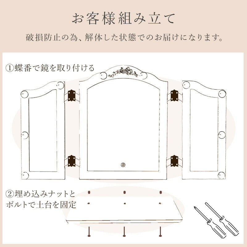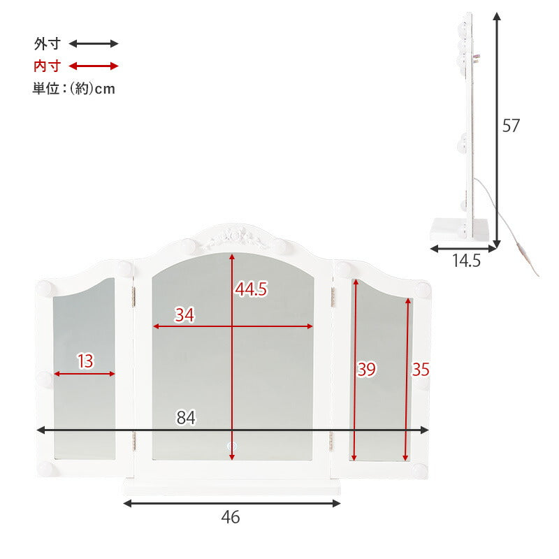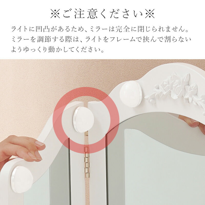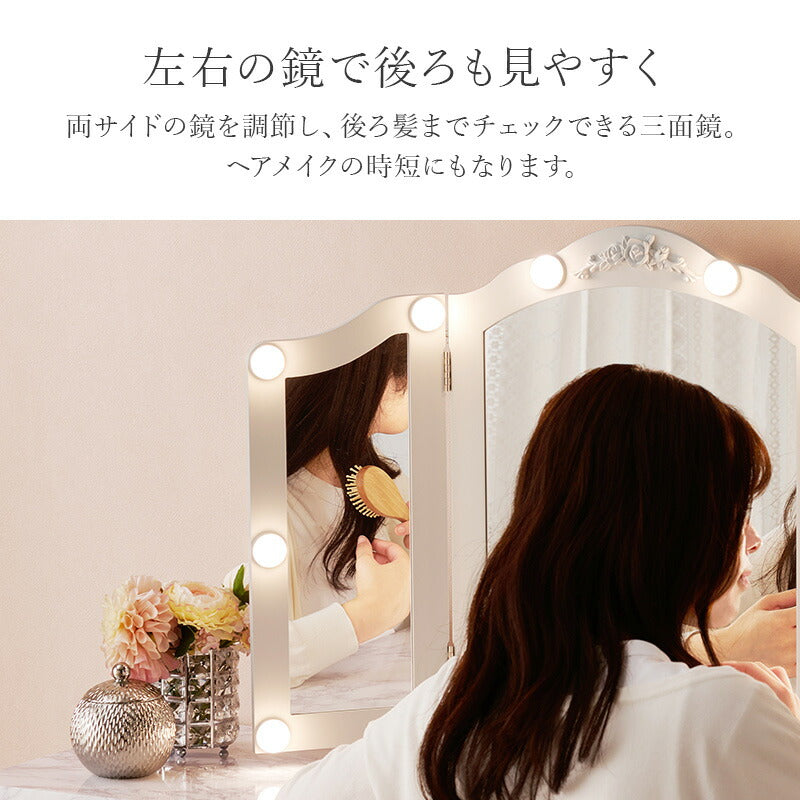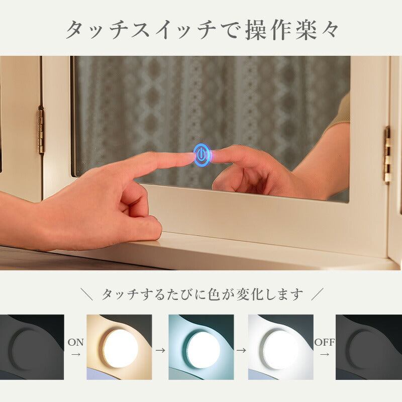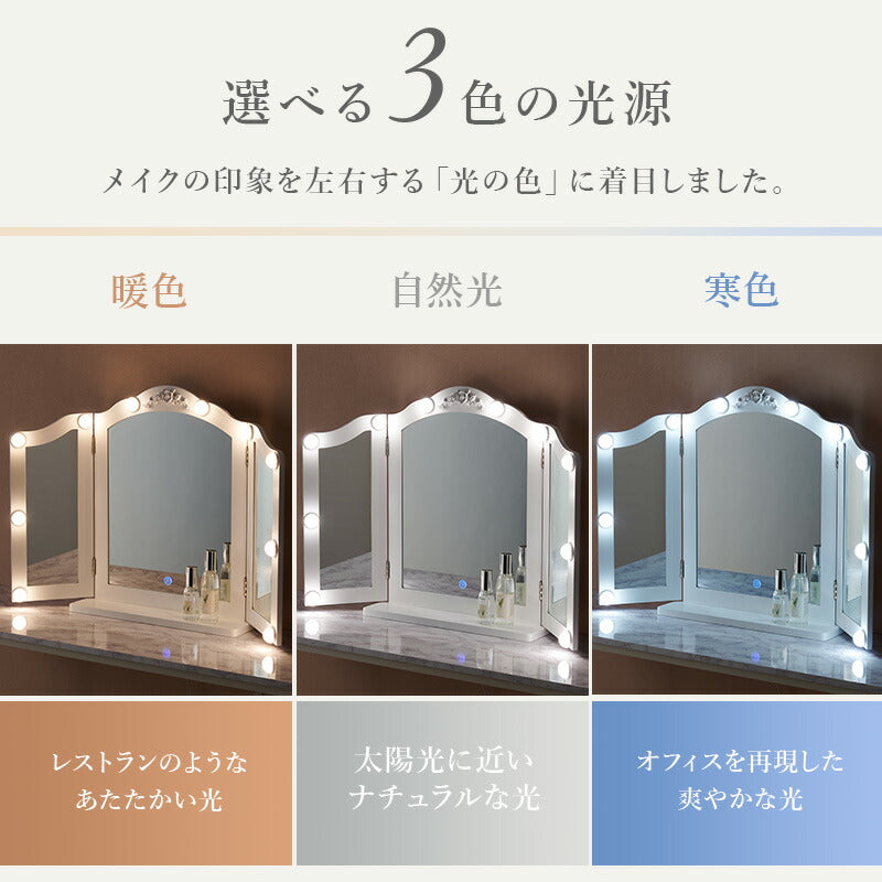 [幅84] 三面鏡 卓上ミラー LEDライト付き Shelly