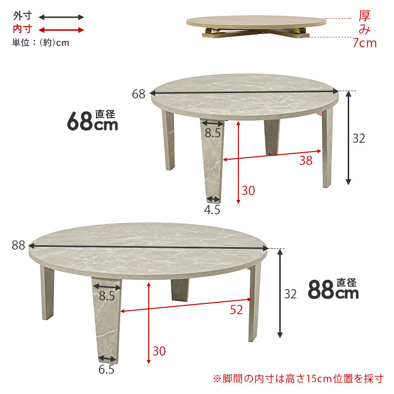【新色登場】[直径68/88] 折りたたみテーブル 丸型 Dice