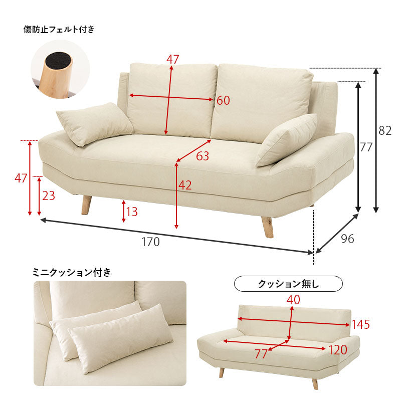 [幅170][開梱組立設置付き][生地サンプル無料] ごろ寝ソファ 2人掛け アームレス クッション付き 脚取り外し可能 Bright